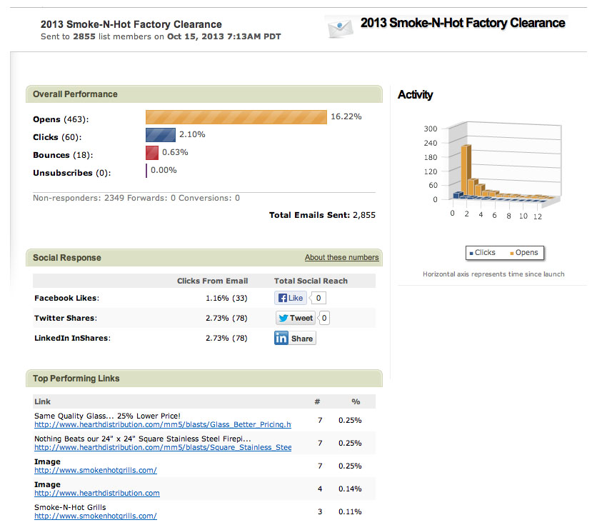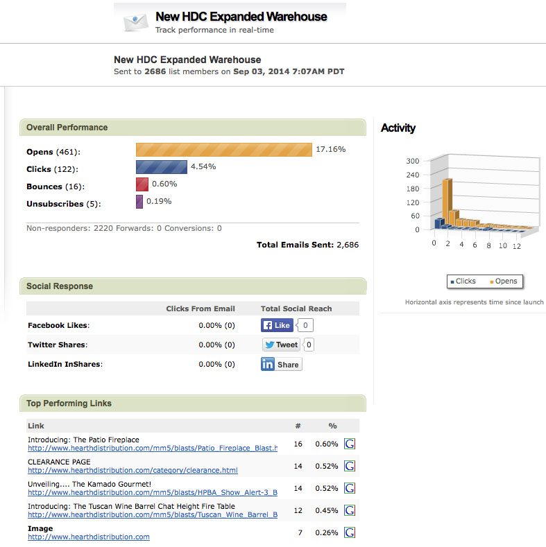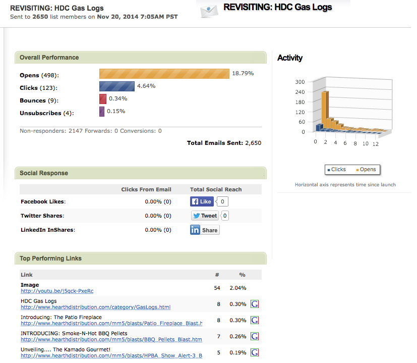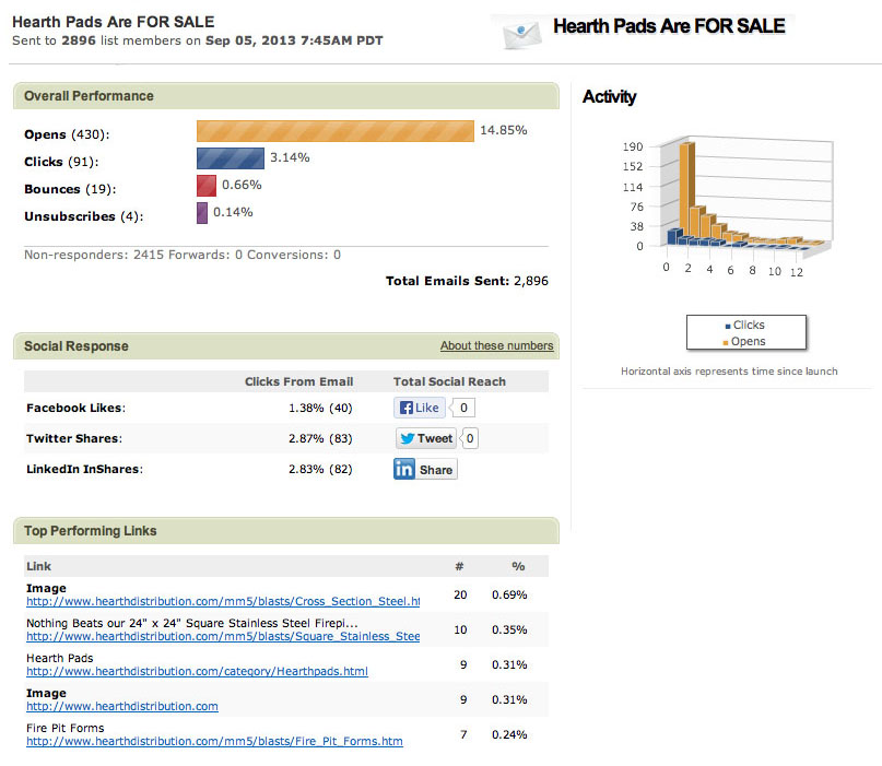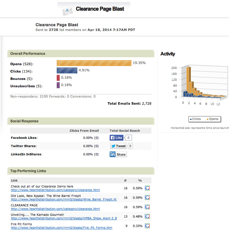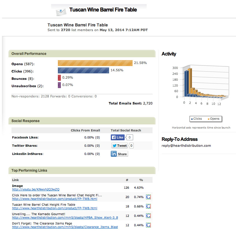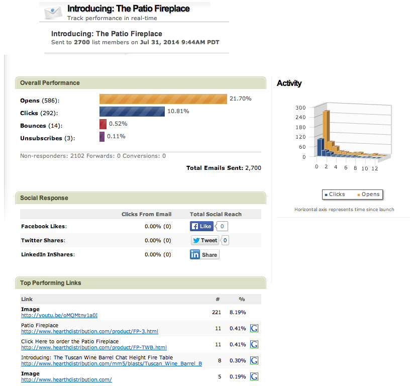 This was BY FAR the Best Blast we've ever had! With 396 clicks! The next closest blast click-throughs was 256 clicks with the wine barrel fire pit. Otherwise this was TEN TIMES more clicks than several other blasts!