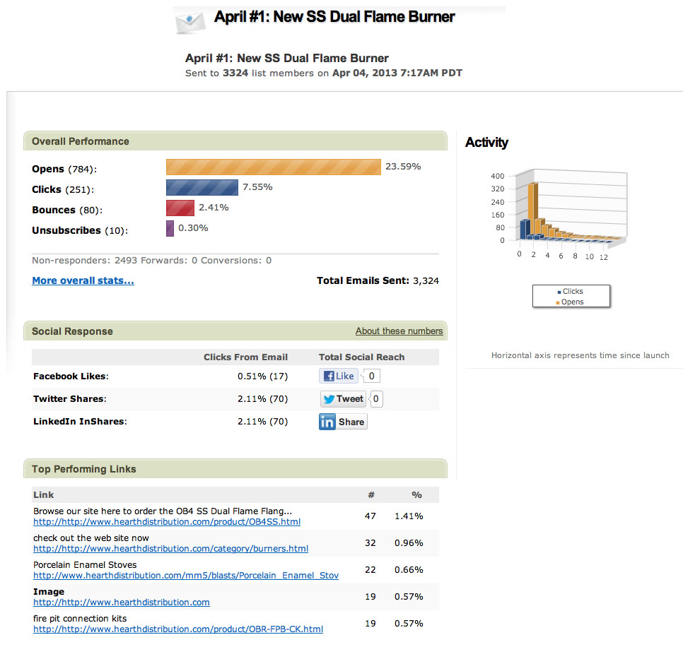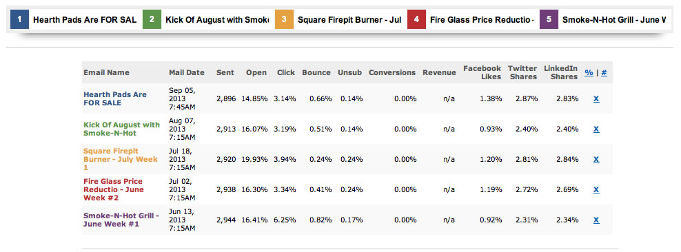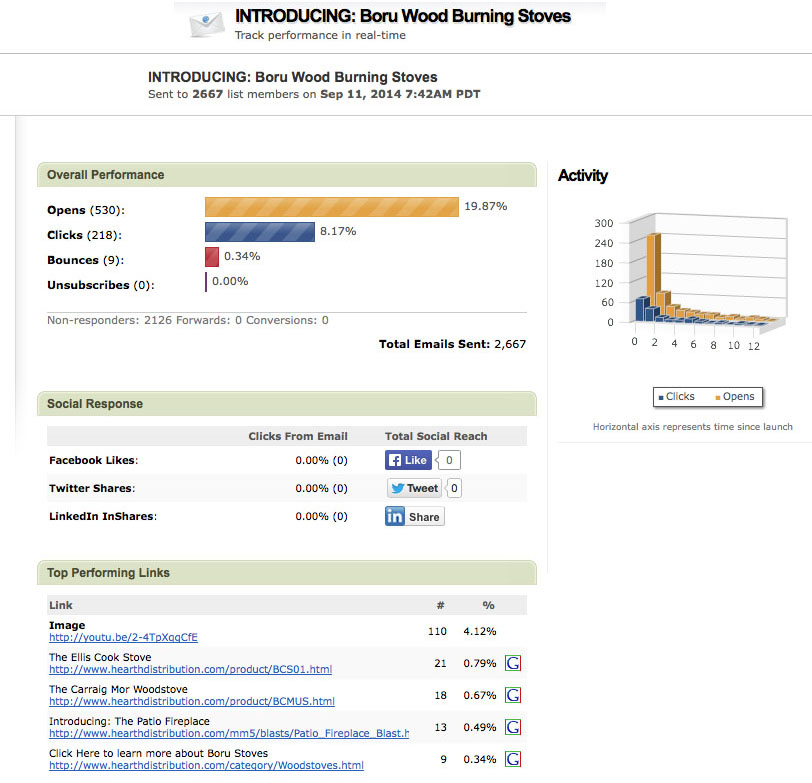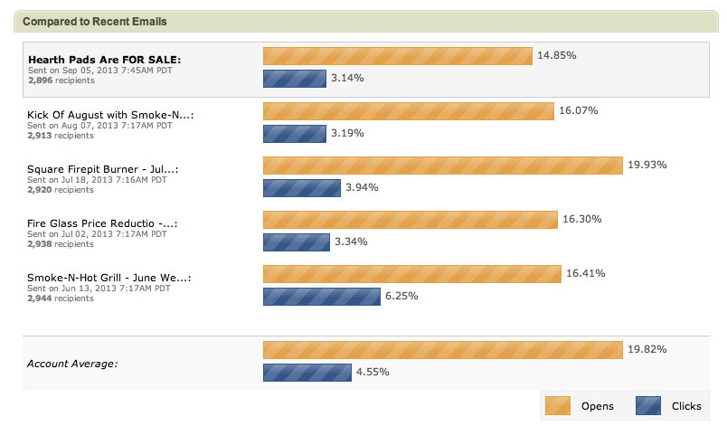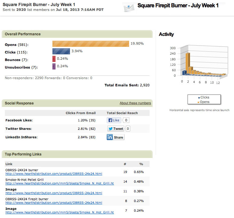 I took another look at the layout as compared to other blasts and nothing significantly different. I thought MAYBE it featured the pics high up on the page, but most every other blast did so as well, so that was not a factor. Maybe it was just the product itself. Makes you think how can you design something similar that "captures" a similar look and feel. First thing I thought of was resurrecting vintage grill formats and turning them into modern firepits. LIke the original Hibachi table-top grill.... or the MAYBE an old tire and rim! If you're going for the "Bubba crowd" the tire and rim idea as goofy as it sounds might work! Or maybe the old 55-gallon, rusty drum! Just a thought....