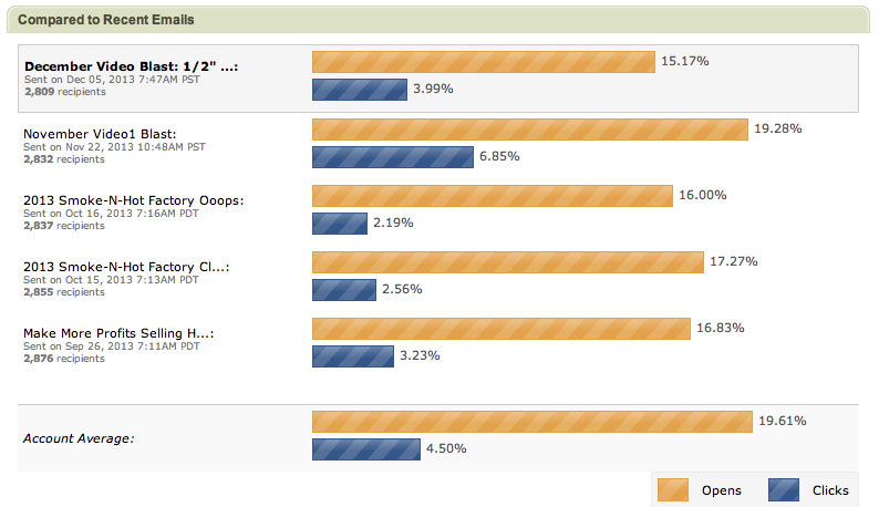 We're back to the "Opens Vs. Clicks" ratio of the typical text blast. In other words, the video blasts get about DOUBLE the number of clicks as well as a marginally higher open rate.