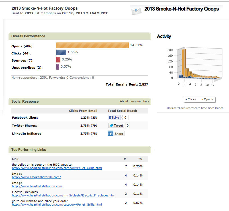 This blast had our lowest click rate so far -- but -- it had out highest Social Media share percentages!